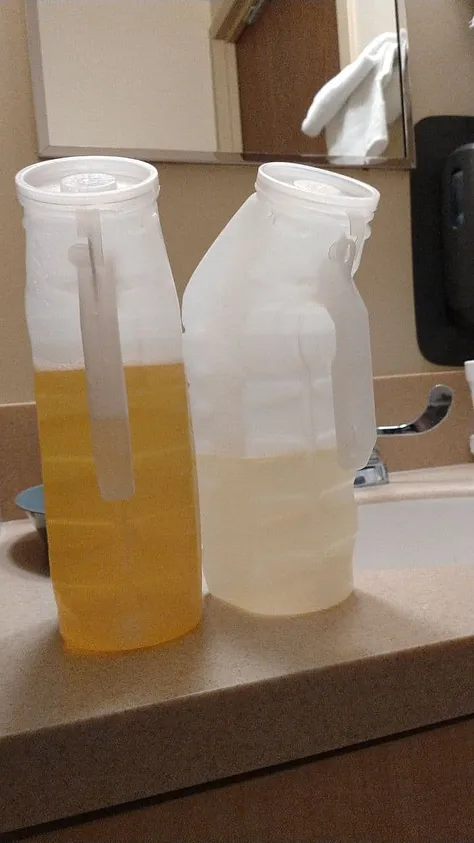 Anyways, so he was in the hospital for 3 days and his INR levels were high. It was 5.0 the first day and then the day 3 in hospital it was 3.5, BUT his tongue split open and blood clots started coming out of his tongue! He pulled out 5-6 clots throughout the 3rd day & night in the hospital! His oxygen levels had only gone up to 88, while on oxygen. I brought up a 32 oz water bottle with 25ml of CDS in it and had him drink while I sat there for 2 hours. His oxygen went up to 99 by the end of those 2 hours, his tongue completely healed up & stopped bleeding & clotting, and his urine went from dark to light (left bottle is before CDS, right is after CDS). He came home from the hospital, drank the CDS for a few days then stopped. 🙄