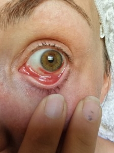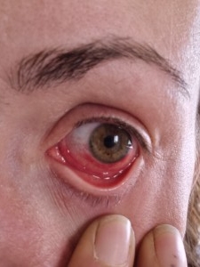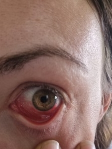 I went to the ophthalmologist and was prescribed an antibiotic ointment and cortisone drops, with the remark that it would take three to four weeks to heal. However, I didn’t use the medication. I did a bit of research and started putting chlorine dioxide drops in my right eye. That was about a week ago. My eye was much better after two days and now a week later there is no sign of the inflammation, the only thing that is still visible is the blood that has collected in the eye. Attached I will send you pictures of my recovery process. Picture 1 is from 17.5, picture 2 from 18.5, picture 3 from 20.5 and picture 4 from 22.5.