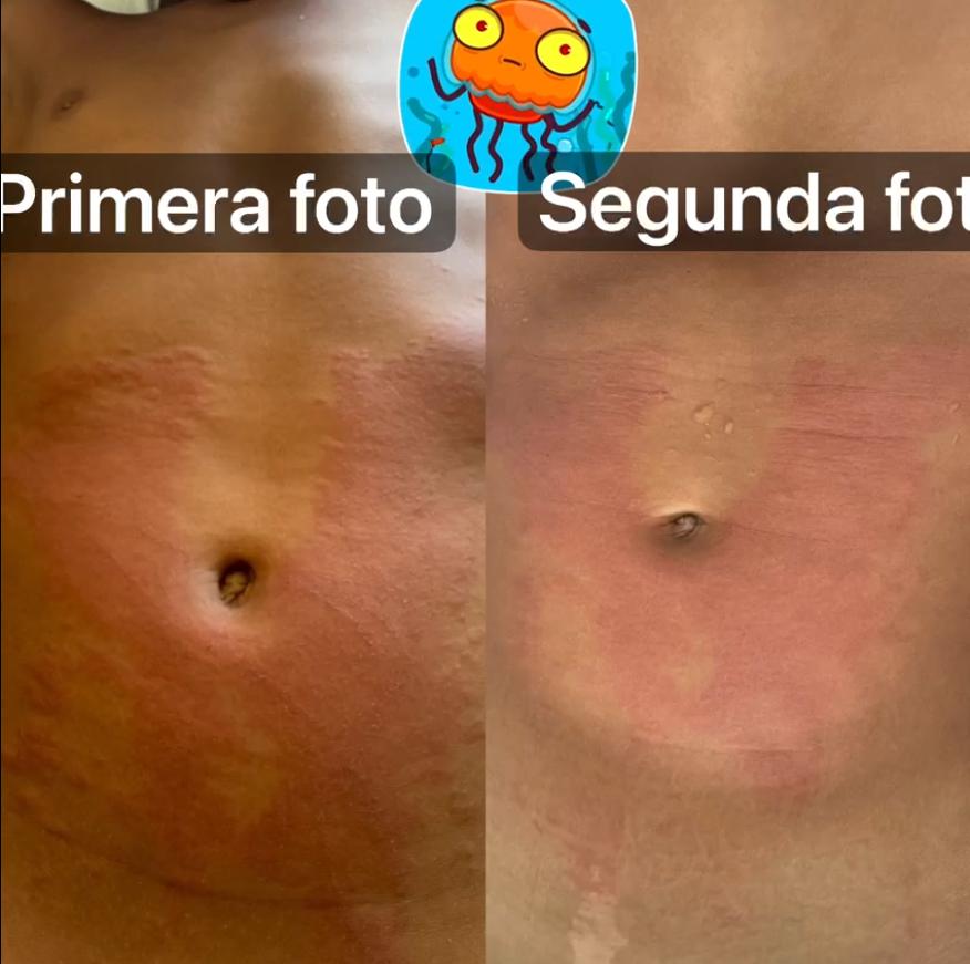 We began using a specially formulated mixture that consisted of a thick paste made with zeolite, diatomaceous earth, and bentonite, all of which had been soaked in sea water. This mixture was designed specifically to help extract the toxins that resulted from the jellyfish sting, aiming for a more effective remedy to alleviate the discomfort and promote healing.