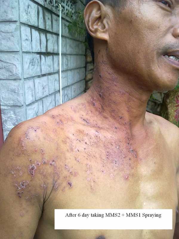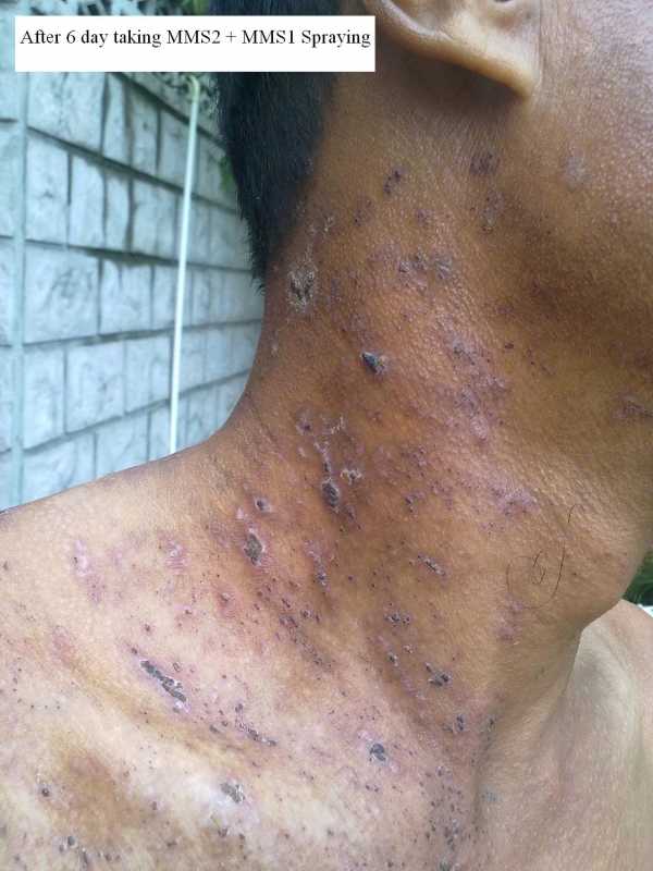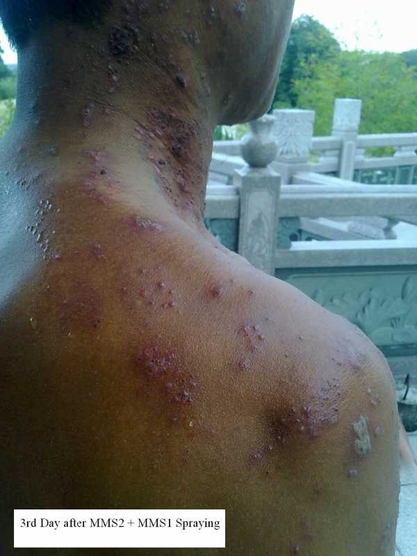 On the third day I was amazed with the progress of the skin, so I decide to take a picture of it. I continue ask him to take MMS2 orally at the same dosage for another 3 days. On the 4th day I again spray his skin with activated MMS1 10 drop spray.